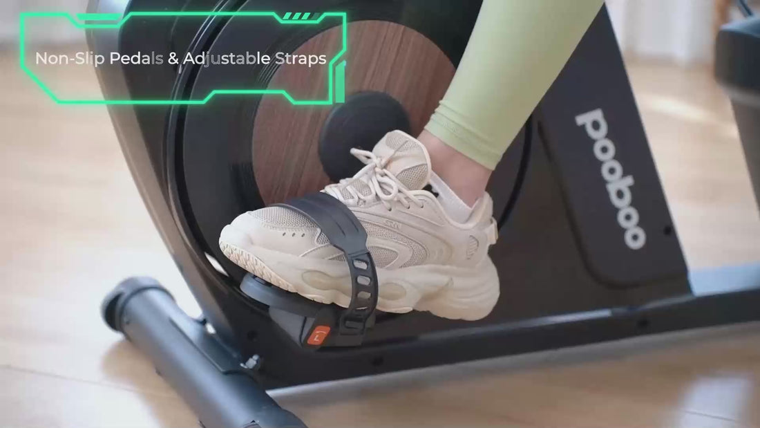 Easy to Assemble & Move:The pooboo recumbent bike designed 80% pre-assembled. Say goodbye to the traditional complicated setup process. Guided by the manual or assembly video, making setup a breeze. Built-in transport wheels and a tail carry handle, making it easy to move around your home when not in use.