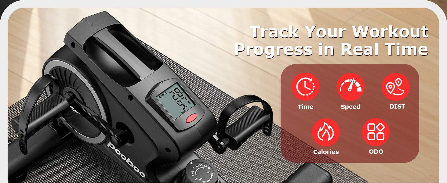 Real-Time Tracking & Great Gift Choice: The LCD monitor tracks time, speed, distance, calories, and ODO, keeping you motivated. The pooboo under desk bike is ideal for weight loss, recovery, or daily activity. This under desk bike also makes a thoughtful gift for parents, grandparents, or professionals, backed by a 1-year warranty for peace of mind.