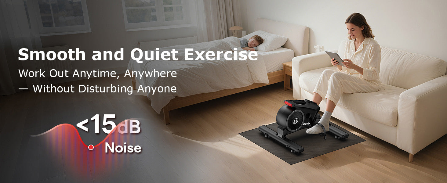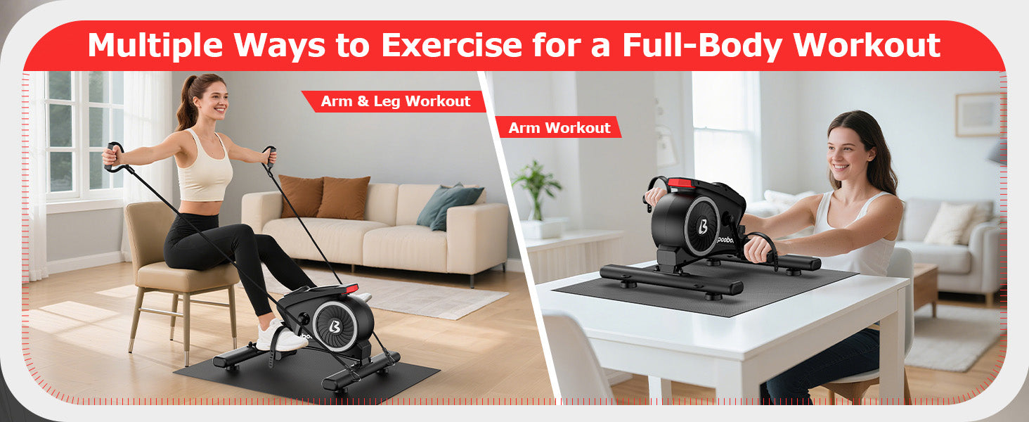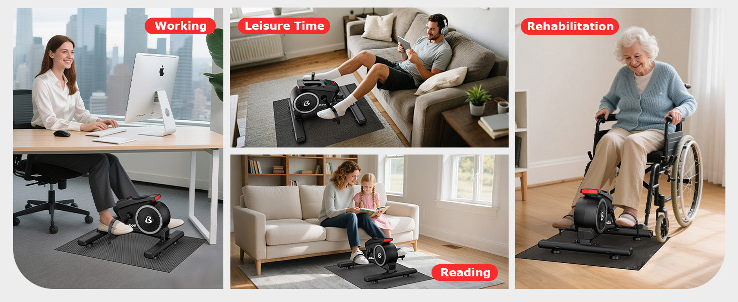 Train Both Arms & Legs - Forward & Reverse Pedaling: Unlike ordinary pedal exercisers, the pooboo under desk bike allows both arm and leg workouts. Use it on the floor for lower body training, or on a desk for arms. With forward and reverse pedaling, this under desk bike engages more muscle groups for a full-body workout.