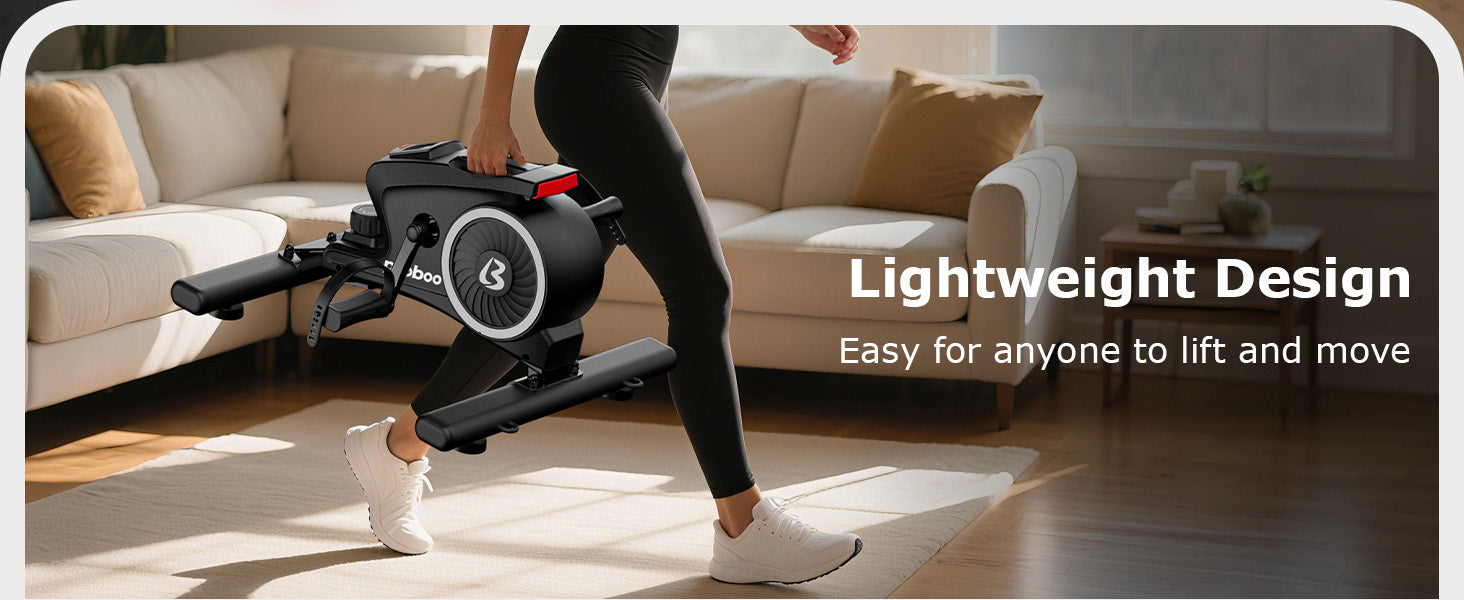Stay Active Anytime - Compact & Portable Design: Whether working at your desk or relaxing at home, the pooboo under desk bike helps you stay active without taking up much space. Weighing only 18.9 lbs with a built-in handle, this under desk bike is easy to carry and store, making fitness simple and convenient for busy lifestyles.