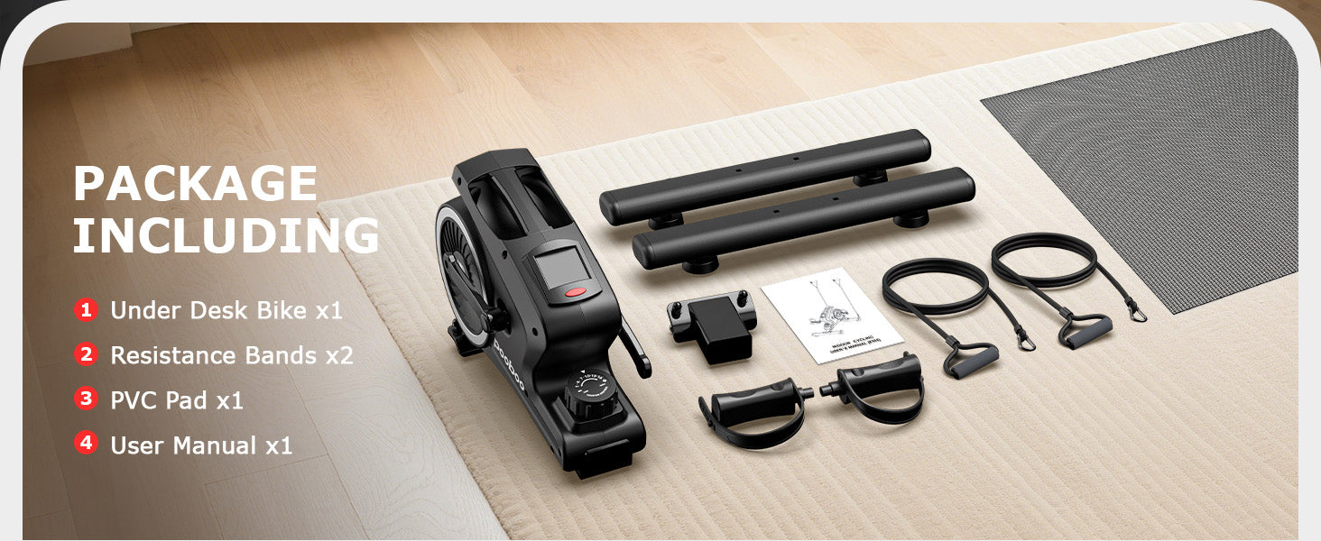 Bonus Resistance Bands - Stable & Safe Workout: Maximize results with 2 included resistance bands for simultaneous arm and leg exercises. The pooboo under desk bike comes with adjustable pedal straps, anti-slip foot pads, and a free floor mat, ensuring your mini exercise bike stays secure while protecting your floors.